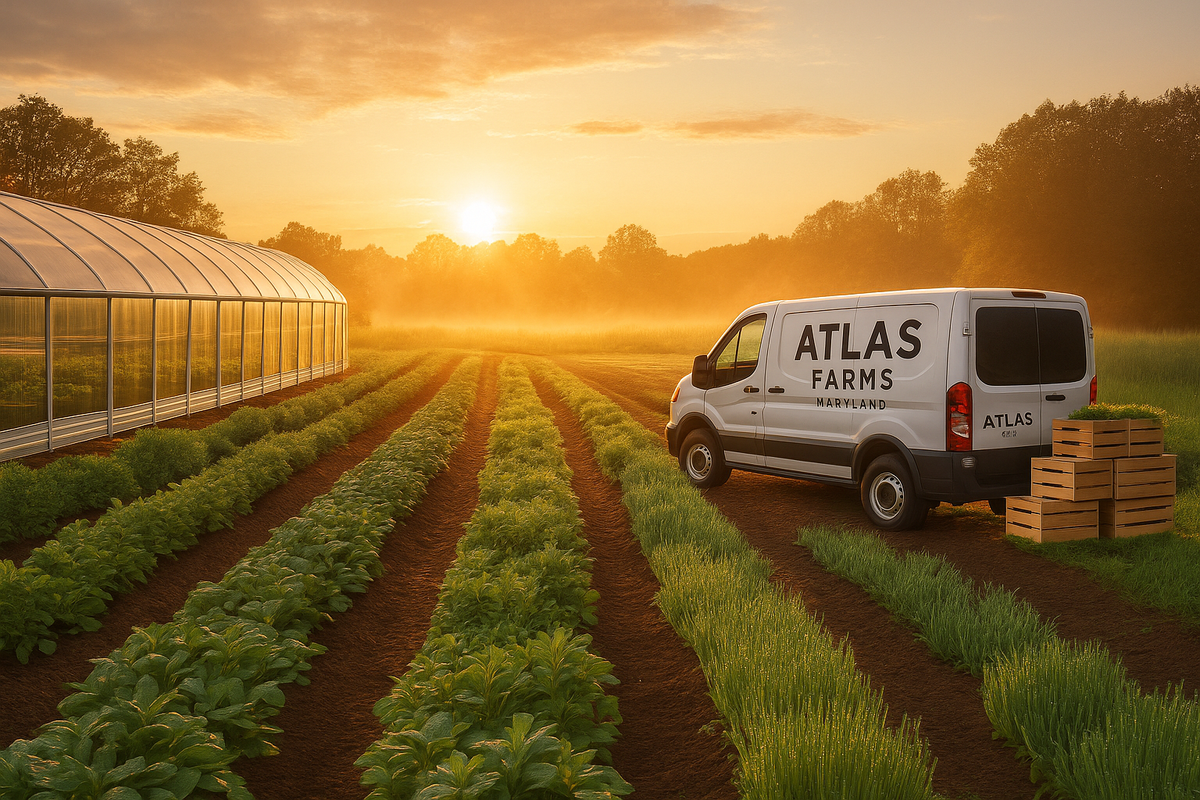 Far beyond the polished glass of Harbor East, down quiet Maryland backroads that smell of earth and dew, sits the heartbeat of Atlas Restaurant Group’s next chapter: Atlas Farms. While most fine-dining stories end in the dining room, this one begins in a field. Dawn creeps over rows of romaine and basil, light washing across the greenhouse panes like the first frame of a nature documentary. Mist clings to tomato vines. Somewhere, a tractor idles softly—preparing the first delivery of the day to Baltimore’s kitchens. This is where Atlas’s vision for sustainability and flavor converges, transforming local agriculture into the unseen star of the group’s cinematic dining universe.